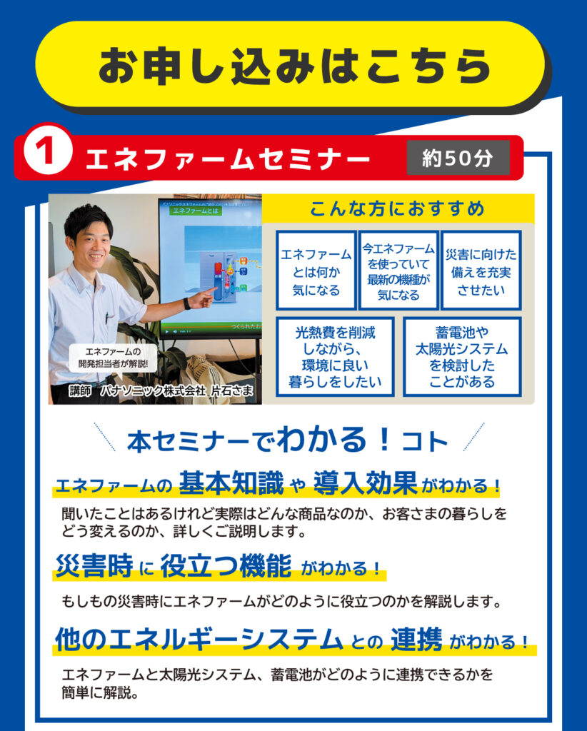 お客さまのライフスタイルや家族構成、光熱費の使用状況を丁寧にヒアリングさせていただいたうえでエネファームをはじめとした【最適な】ご提案をさせていただきます。