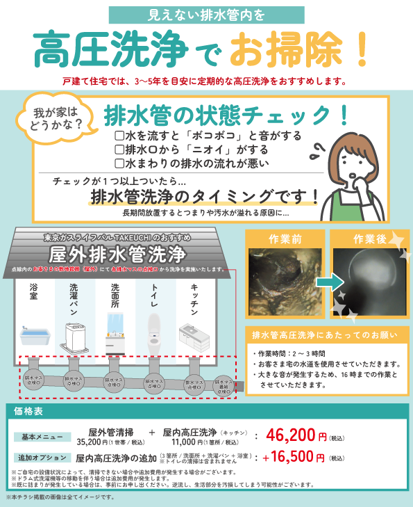 「一戸建て」にお住まいのお客様に、排水管洗浄のご案内です!