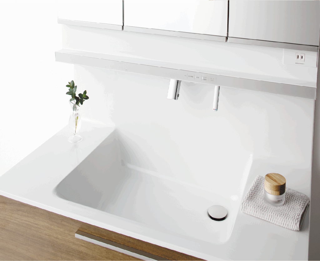 水栓の位置が高く、深さと奥行を確保したボウル形状。